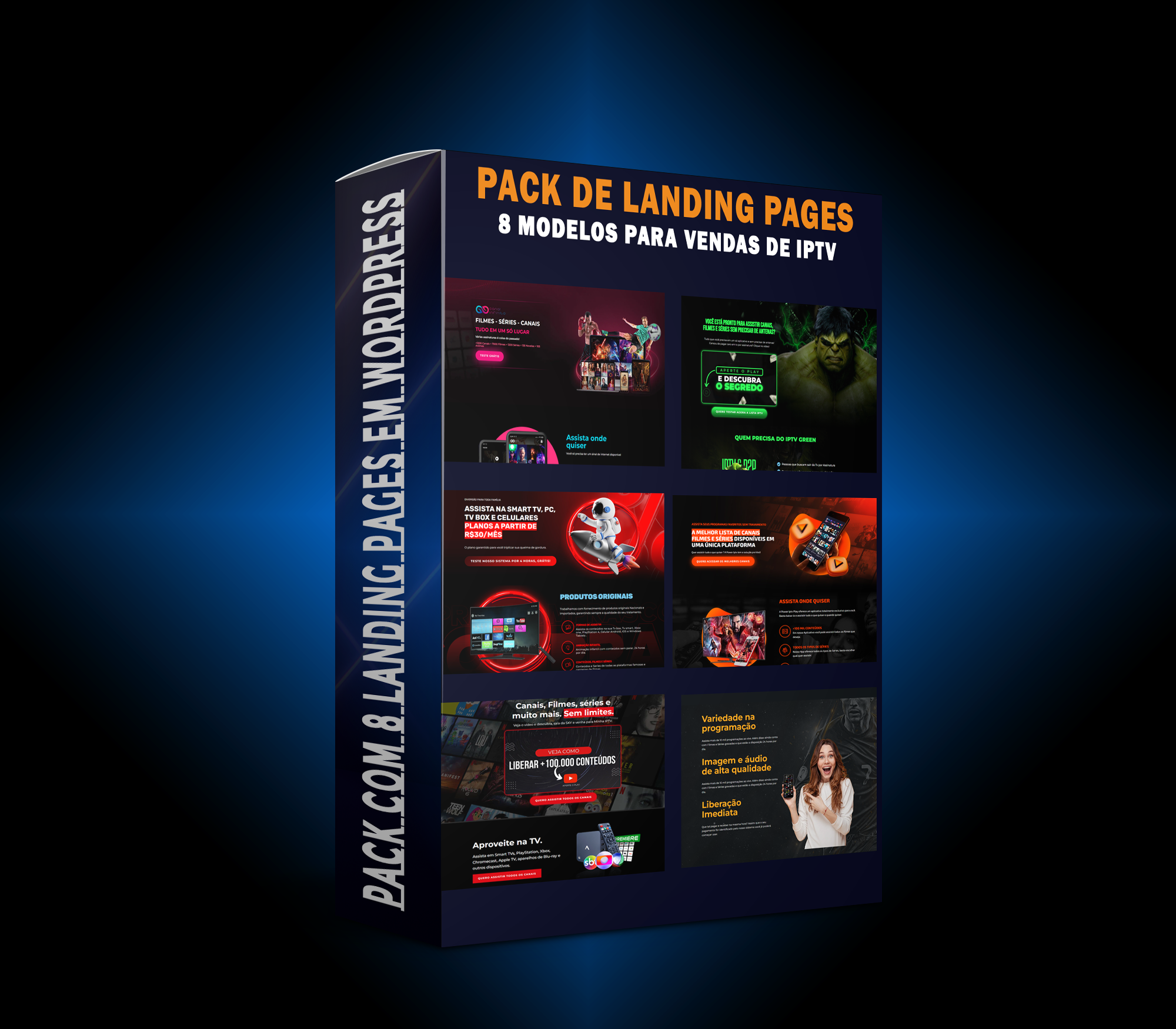 Transforme sua presença online com este pack exclusivo de 8 landing pages modernas e responsivas, desenvolvidas em WordPress. Ideal para quem deseja criar páginas de alta conversão para diversos nichos e objetivos.